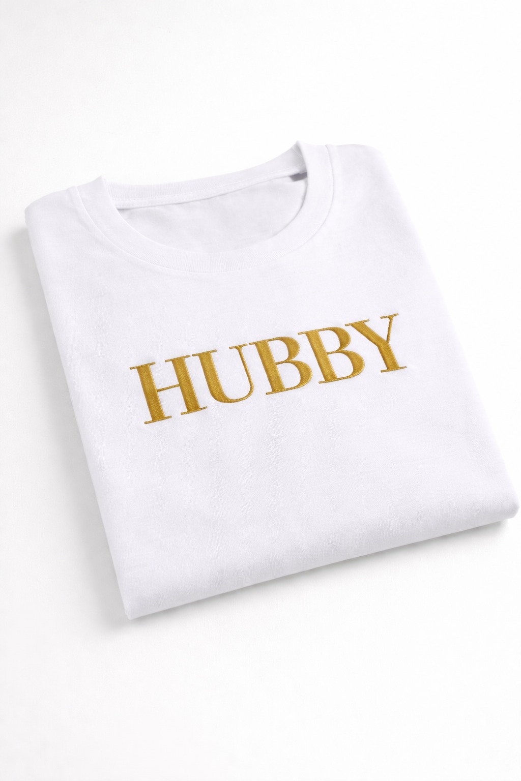 Keep it simple and stylish with our Hubby embroidered T-shirt, featuring a clean and timeless design stitched directly into the fabric. Perfect for everyday wear, hen parties, honeymoons, or as a special gift, this T-shirt adds a subtle and elegant touch.