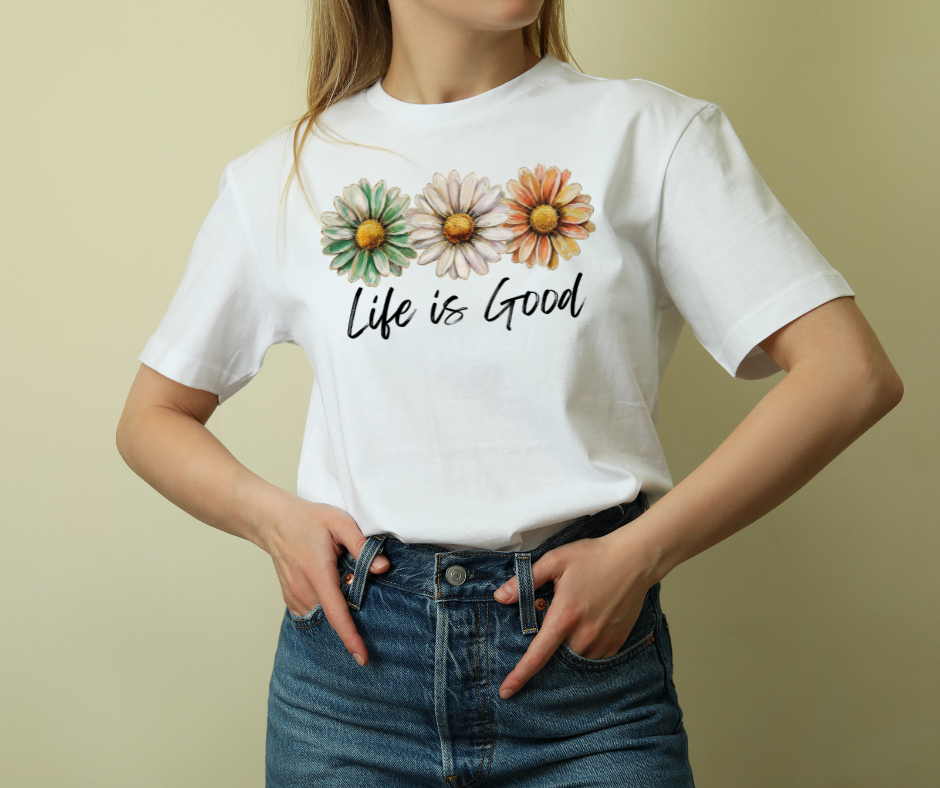 Spread good vibes with our “Life Is Good” T-shirt, featuring a simple and uplifting design that’s perfect for everyday wear. This positive message is all about enjoying life and appreciating the little moments, making it a great feel-good addition to any wardrobe.