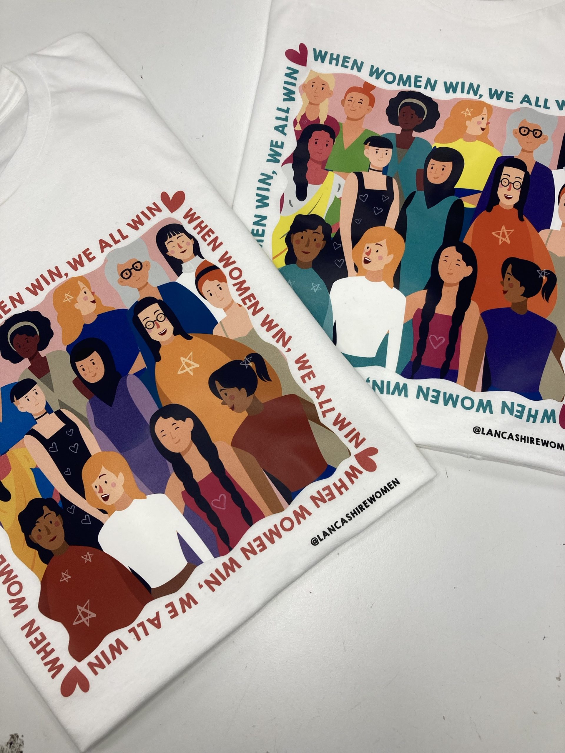 £8 from each Tshirt sold is donated directly to Lancashire Women!