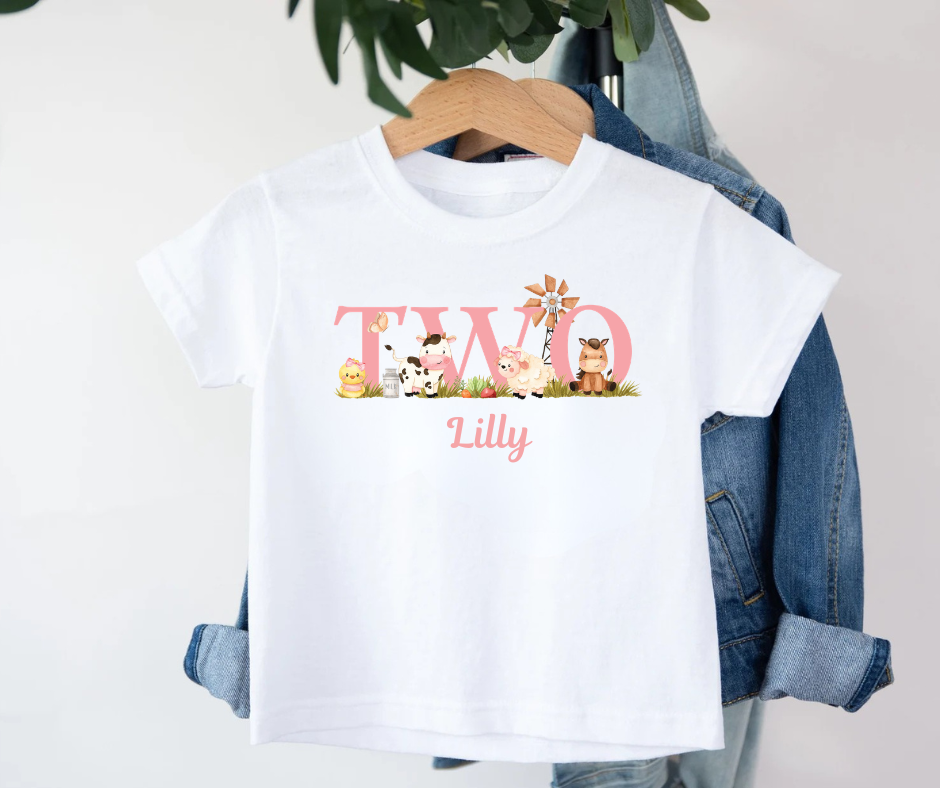 Celebrate your little oneโ€™s special day with our adorable Pink Farmyard Birthday T-shirt, featuring a sweet farm animal design perfect for birthdays and special occasions. With soft pastel tones and cute characters, this T-shirt is ideal for parties, photos, and creating lasting memories.