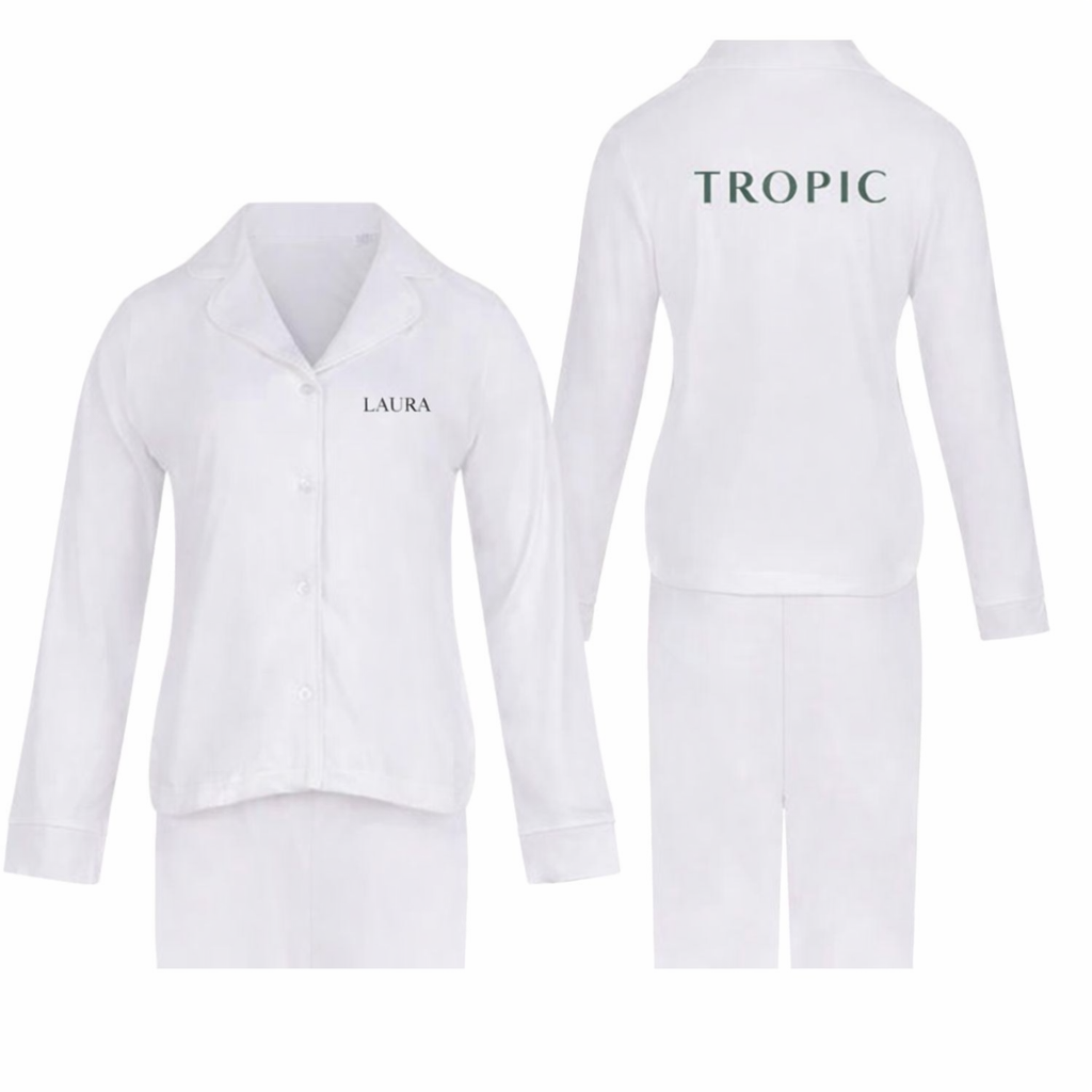 Drift off in style with our Tropic Embroidered PJs – the perfect blend of comfort, quality, and personalised charm. Designed for those who love a relaxed yet stylish look, this set brings a fresh, tropical-inspired vibe to your nightwear collection.